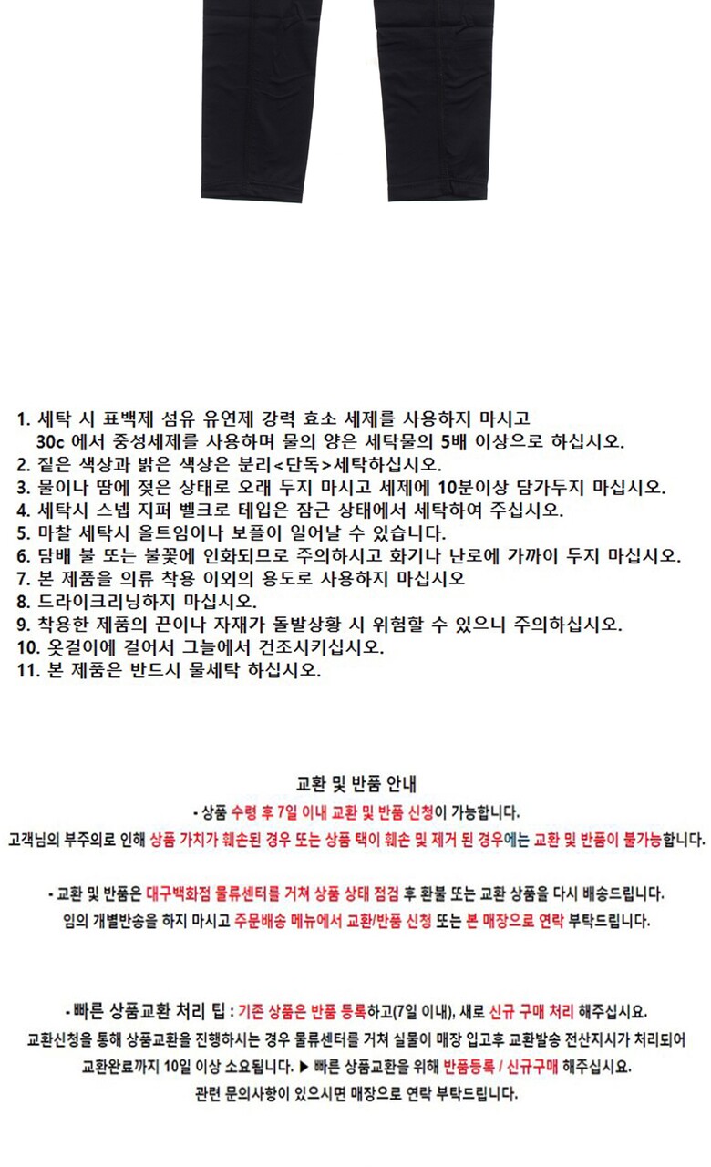 • 처음 배송된 상품상태와 다를 경우(세탁/착용 후 외출하신 경우) 반품이 불가합니다.