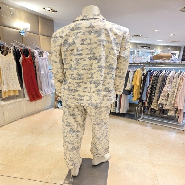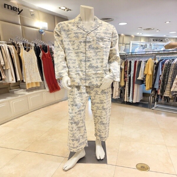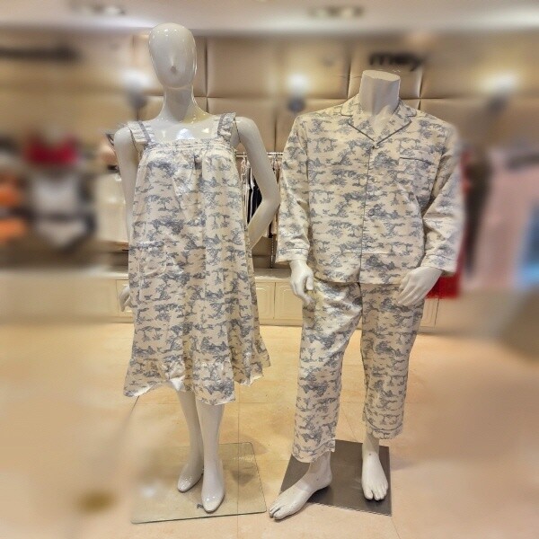 면100% 60수 주자 나염 프린트 커플 원피스 잠옷 세 트고급면 사용한 부드러운 원단 촉감이 좋으며 간절기 및 사계절 입기 좋은 잠옷 여성 원피스 홈웨어 겸용 골프 가운으로 활용도 좋음??