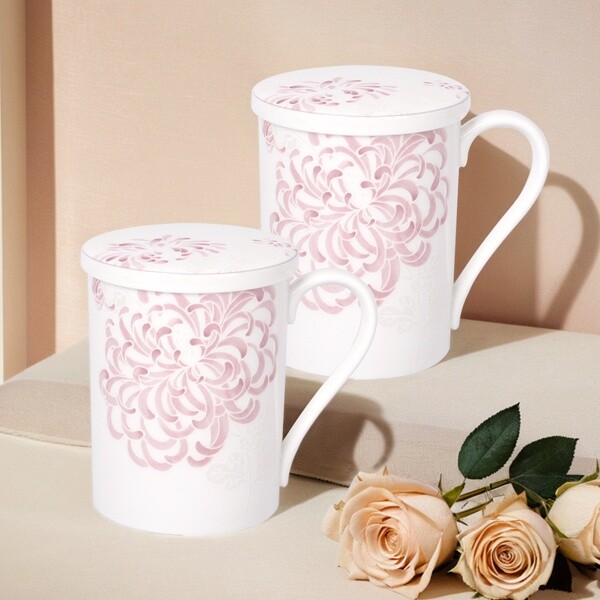 _본차이나 국화문 2인 뚜껑머그세트