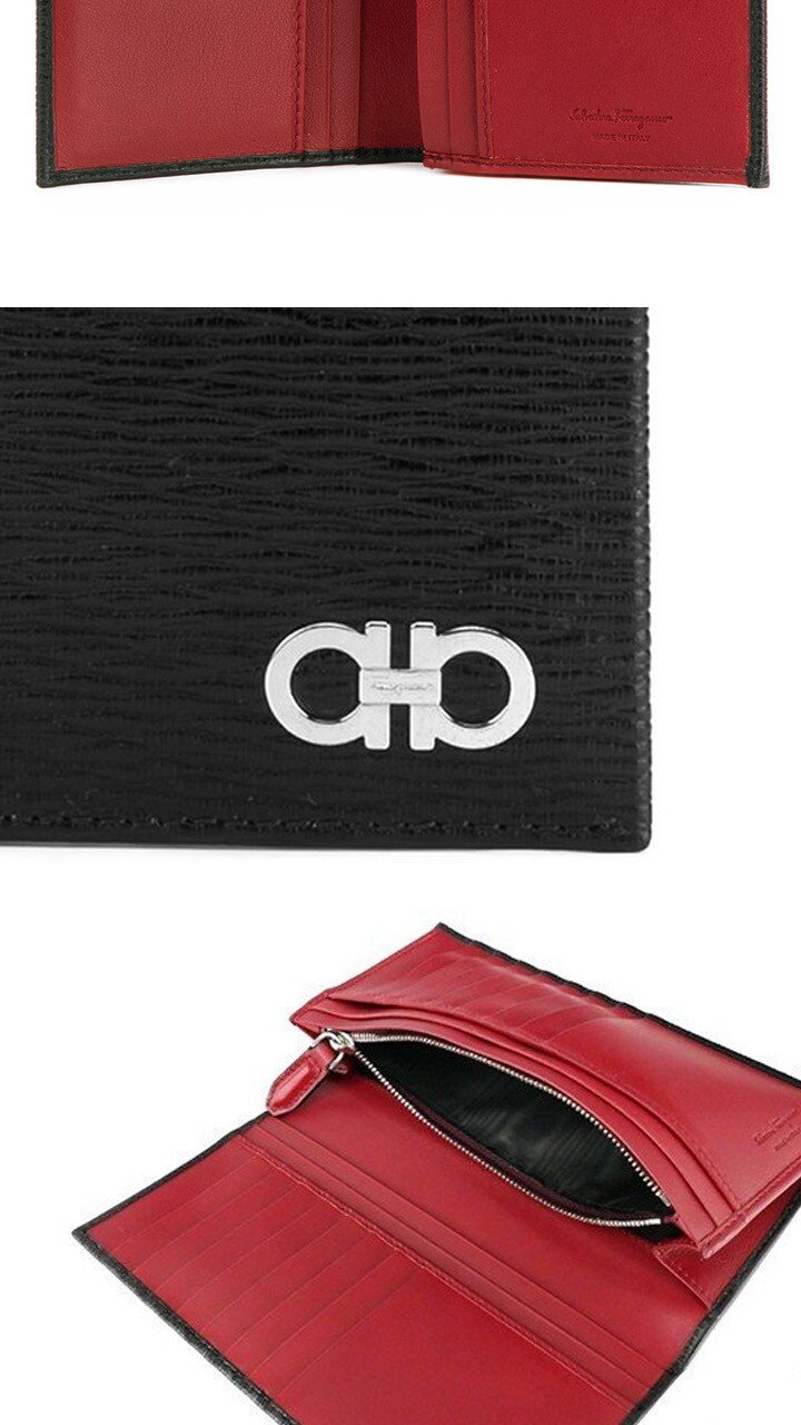페라가모 25FW 더블 간치니 투톤 장지갑 블랙레드 66-A069 0686018
