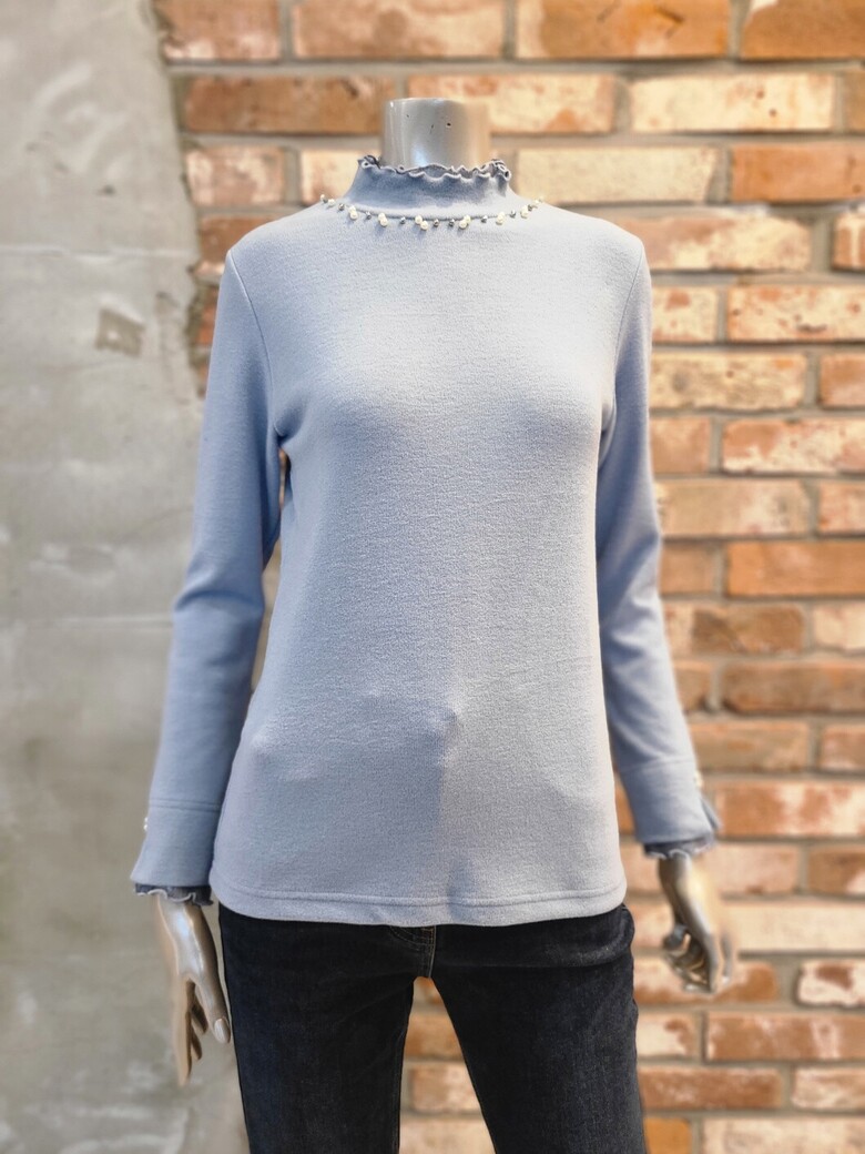 목걸이 비즈장식 목크넥 티셔츠 JA-DW0WKL-211