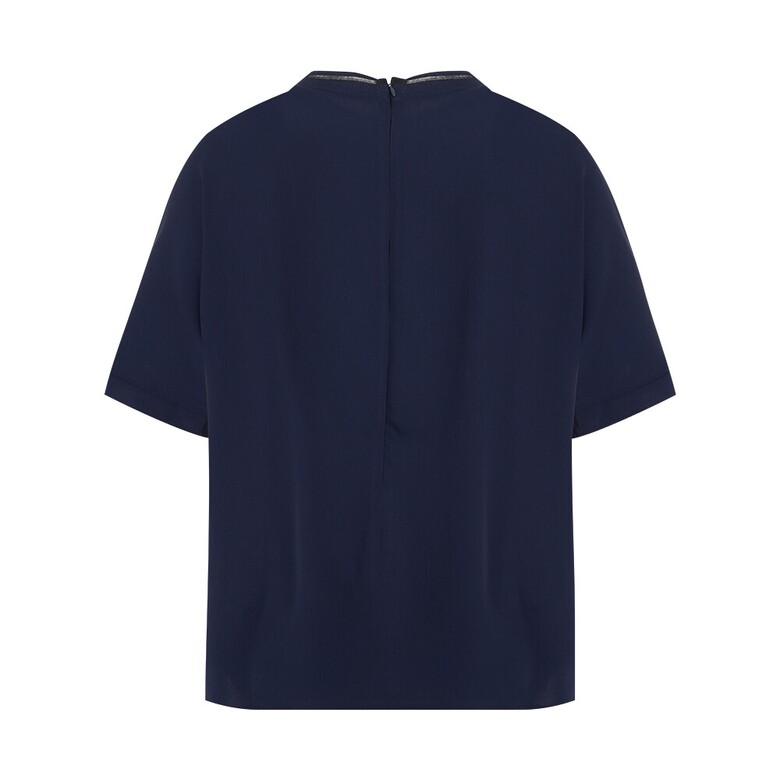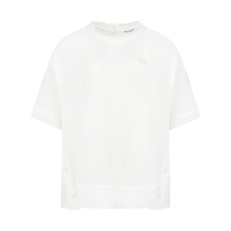 넥과 밑단에 시보리 배색이 포인트로 들어간 라운드넥 블라우스 입니다. 케주얼하면서도 여성스러운 디자인의 아이템입니다.