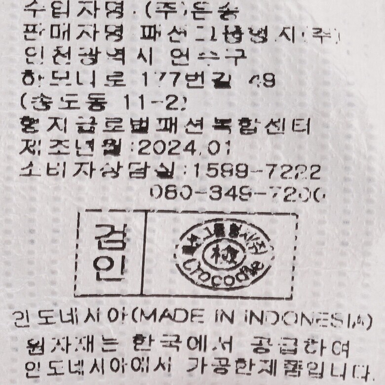 1. 제품 소재 (섬유의 조성 또는 혼용률을 백분율로 표시, 기능성인 경우 성적서 또는 허가서) | 상품상세참조 |