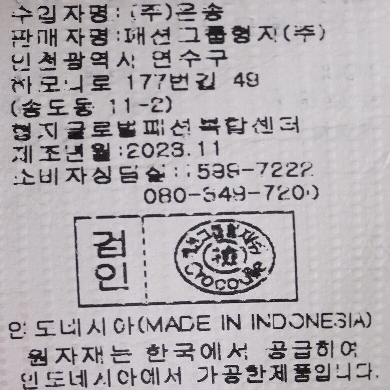 | 1. 제품 소재 (섬유의 조성 또는 혼용률을 백분율로 표시, 기능성인 경우 성적서 또는 허가서) | 상품상세참조 |