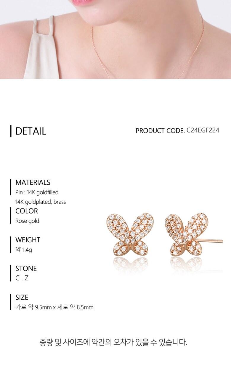 14K GF 핑크 버터플라이 귀걸이 C24EGF224