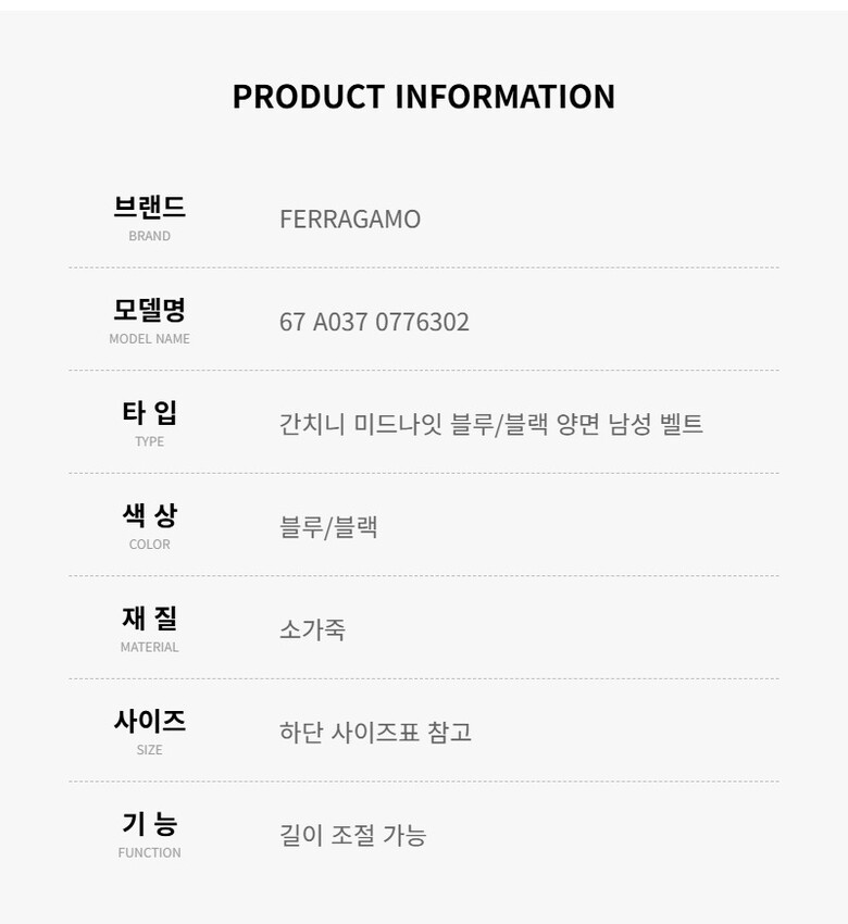 페라가모 67 A037 0776302 (67A037 776302) 간치니 미드나잇 블루/블랙 양면 벨트