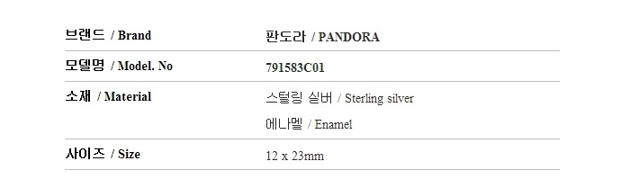 | 1. 소재 / 순도 / 밴드재질 | 실버 / 쥬얼리 - 스털링실버 / 팬던트 - 에나멜 |