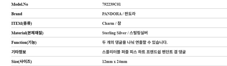 판도라 792239C01 모먼트 스플리터블 퍼즐 피스 하트 프렌드쉽 펜던트 겸 댕글 실버 참