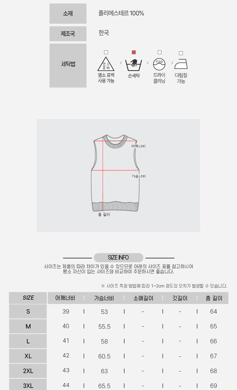 3. 치수 M,L,XL,2XL,3XL