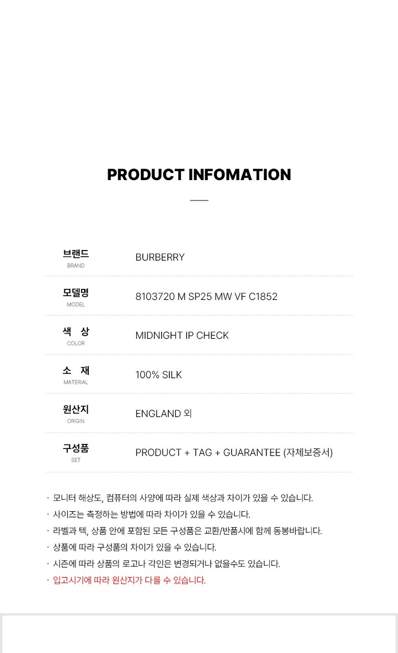 (버버리) 8103720 M SP25 MW VF C1852 SS25 남성 체크 실크 넥타이