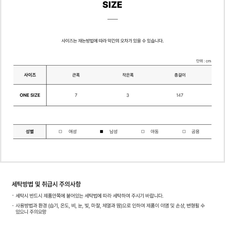 3. 치수 | 큰폭 7cm X 작은폭 3cm X 총길이 147cm |