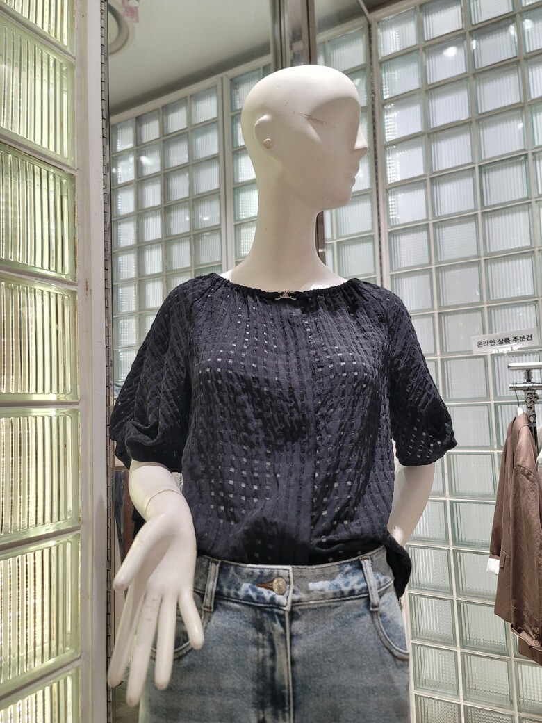 Z00C 스트랩 체크 블라우스 Z242MSC031