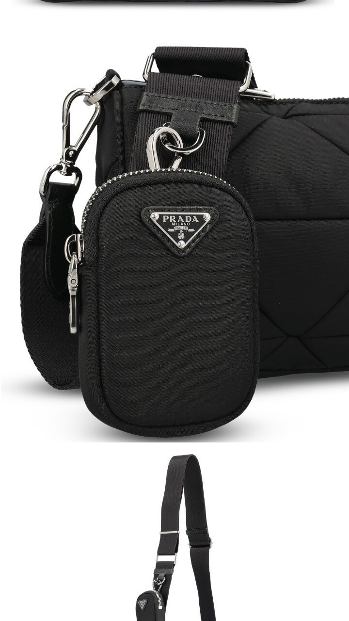 프라다 25FW 삼각로고 테수토 퀄팅 패딩 숄더크로스백 블랙 1BC237 RDJN F0002