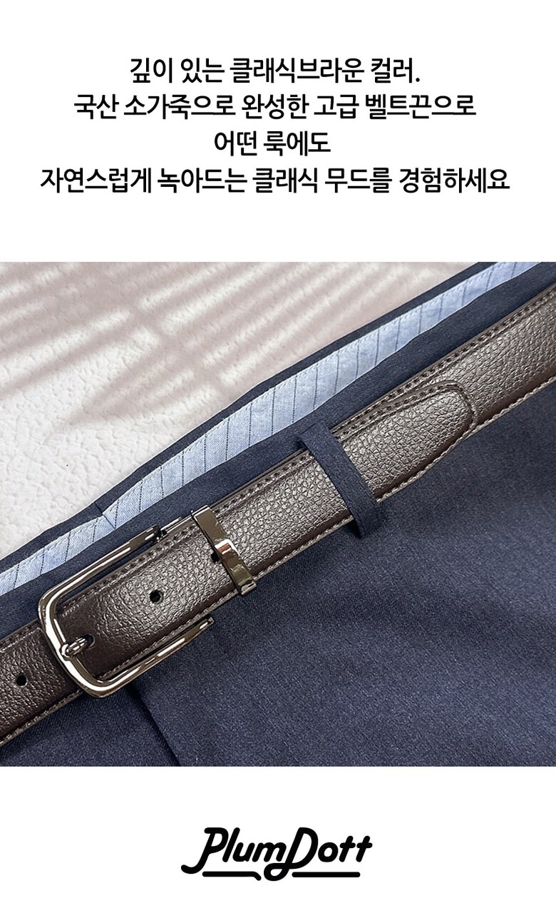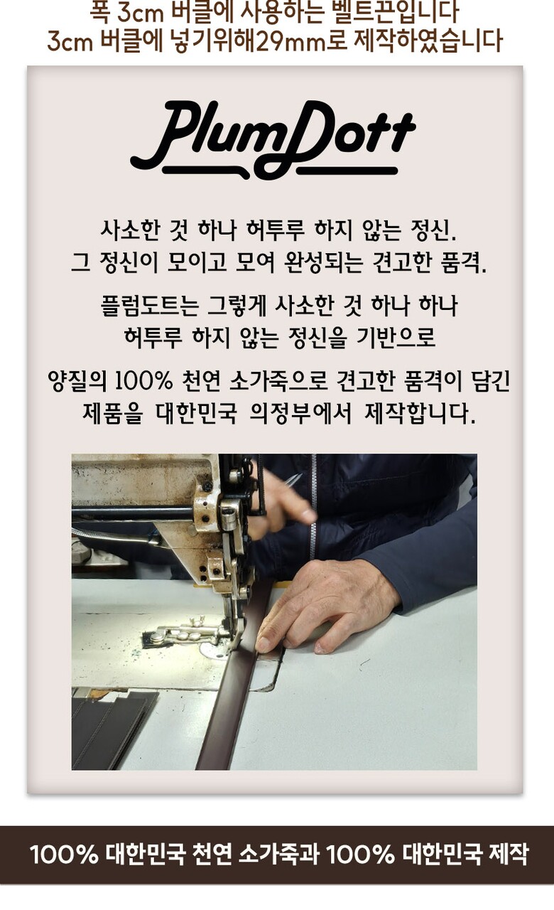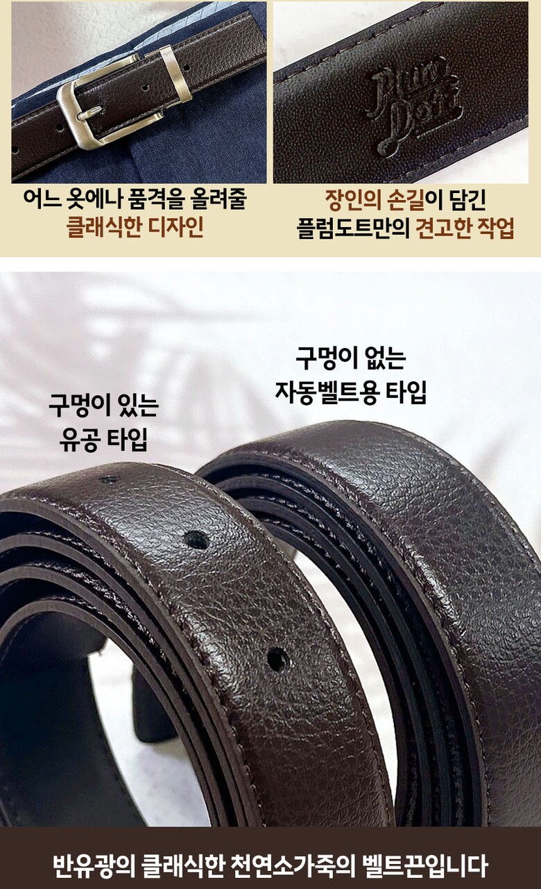 국산 플럼도트 교체용소가죽벨트끈 클래식브라운110cm