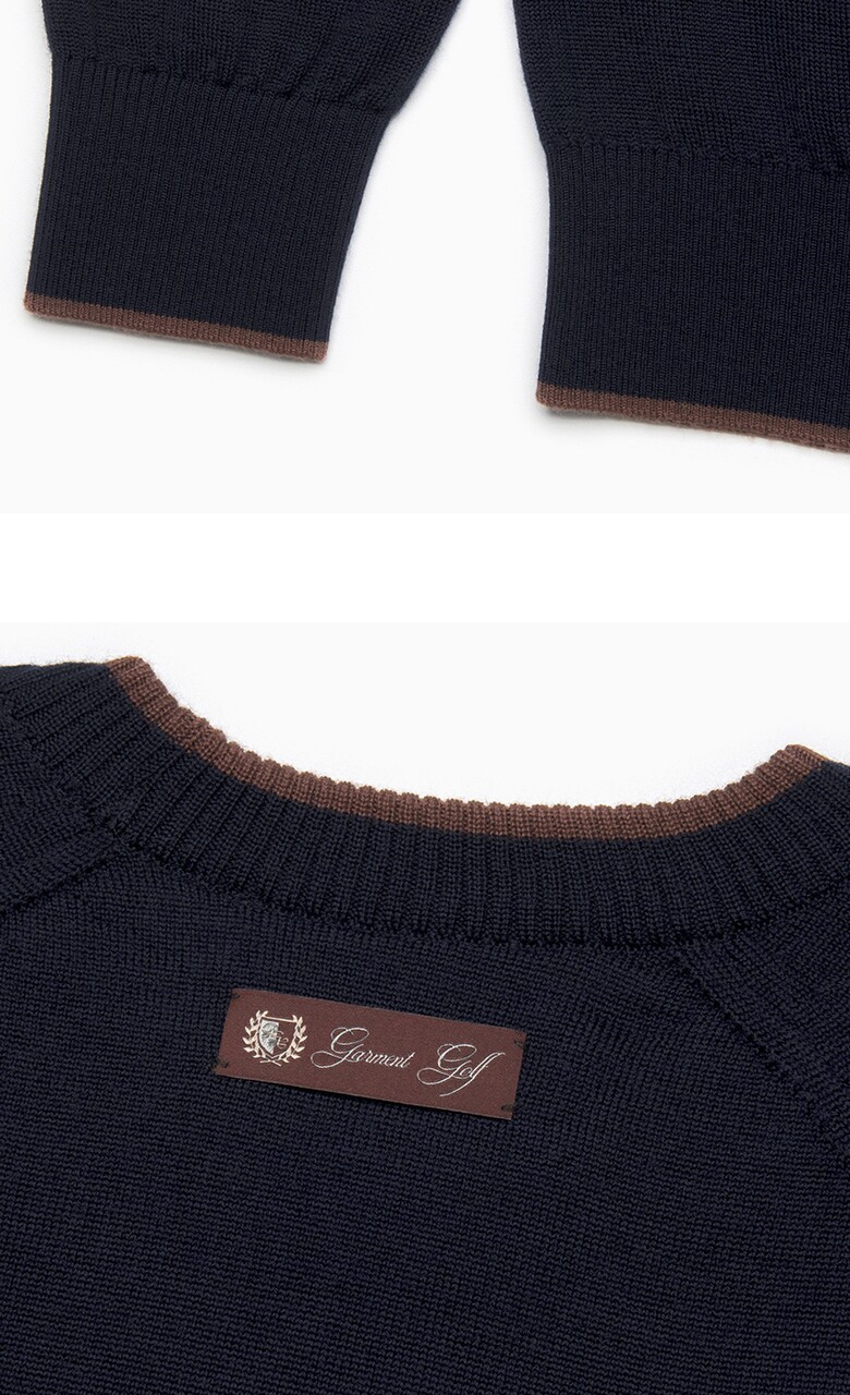 가먼트골프 남성 울 래글런 블루종 긴팔 니트 티셔츠 GMKPC306