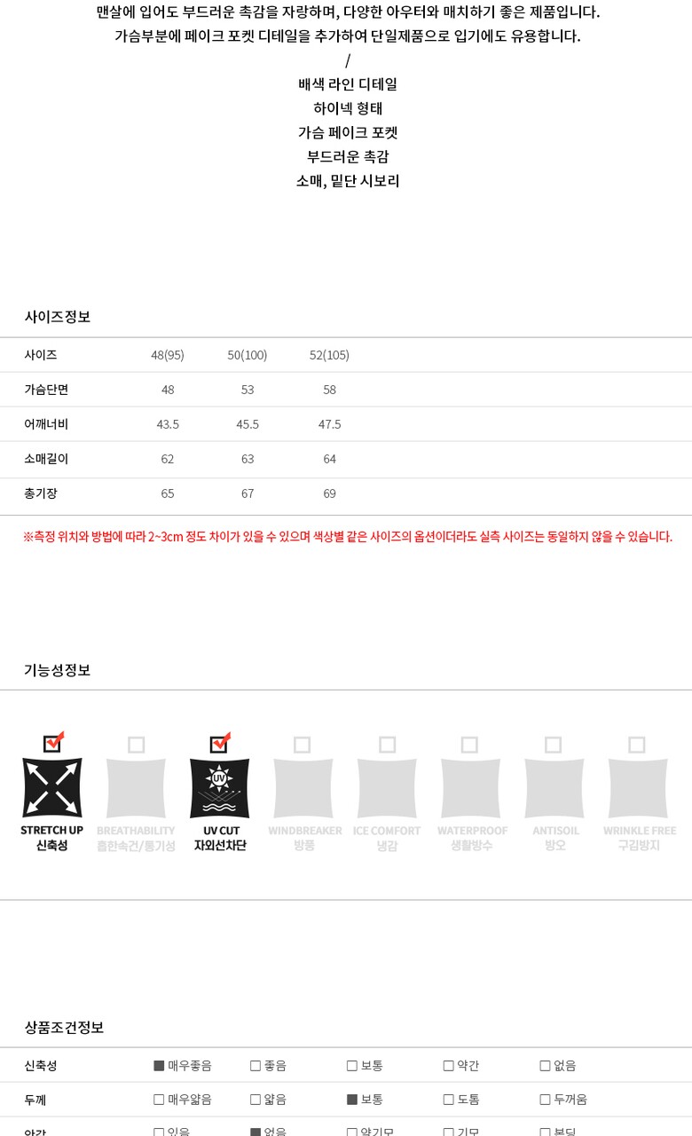 1. 제품 소재 (섬유의 조성 또는 혼용률을 백분율로 표시, 기능성인 경우 성적서 또는 허가서) | 겉감:레이온50%,나일론30%,폴리에스터20% |