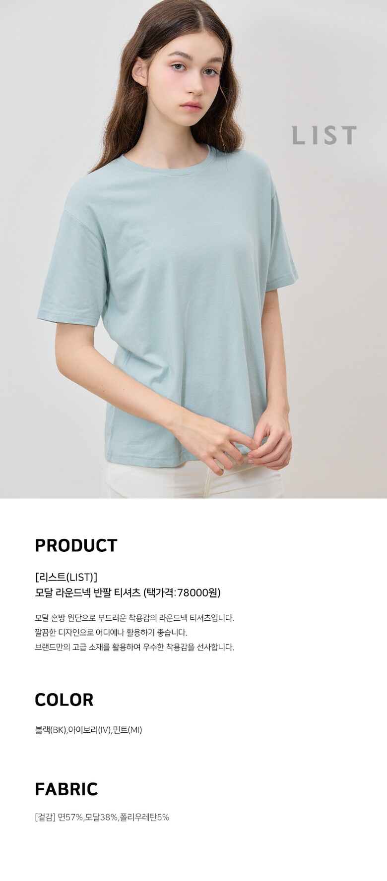 [리스트(LIST)] 고급소재 모달 라운드넥 반팔 티셔츠 (택가격: 78000원)