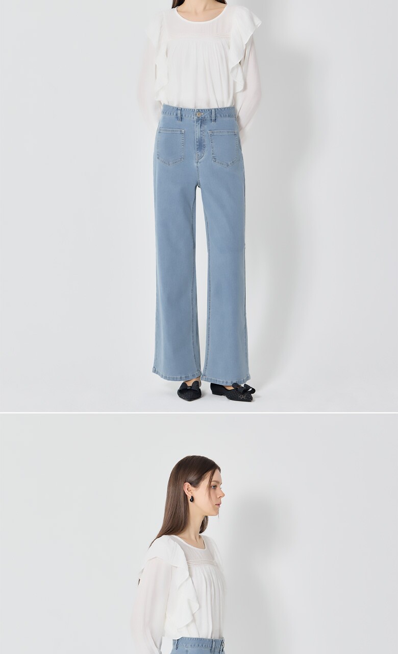 패치 포켓으로 스타일적 요소를 더해줌과 동시에 실용성을 살린 데님팬츠입니다. 브랜드만의 고급 소재를 활용하여 우수한 착용감을 선사합니다. 여유 있게 퍼지는 와이드 팬츠로 스타일리시하며, 편안한 착용감을 선사합니다.