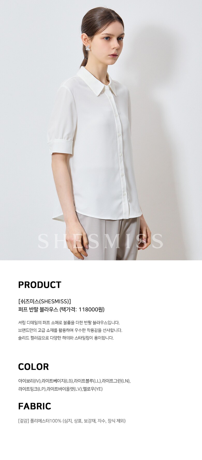 [쉬즈미스(SHESMISS)] 지적인 퍼프 반팔 블라우스 (택가격: 118000원)