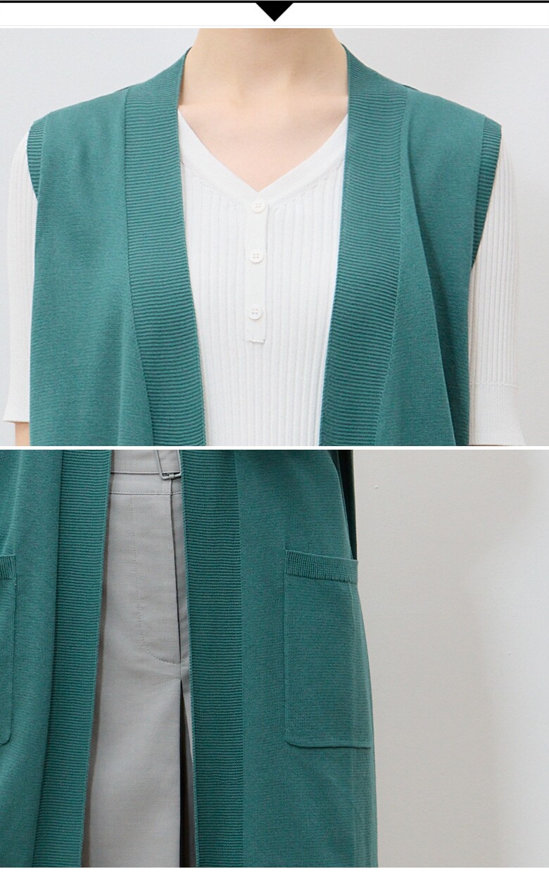 롱한 기장김으로 착용시 스타일리시한 니트 베스트입니다.