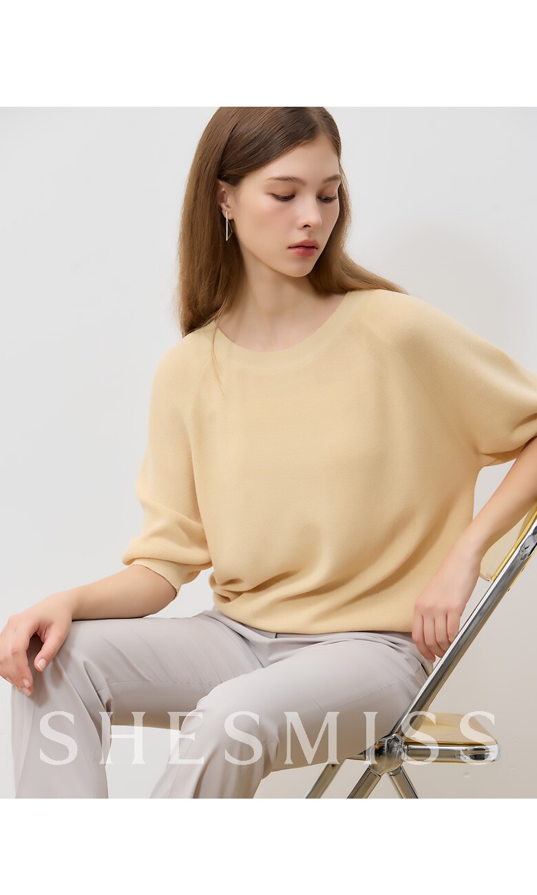[쉬즈미스(SHESMISS)] 우아한 고급소재 백 버튼 포인트 니트 탑 (택가격: 208000원)