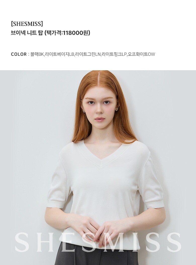 [쉬즈미스(SHESMISS)] 러블리 브이넥 퍼프 니트 탑 (택가격: 118000원)