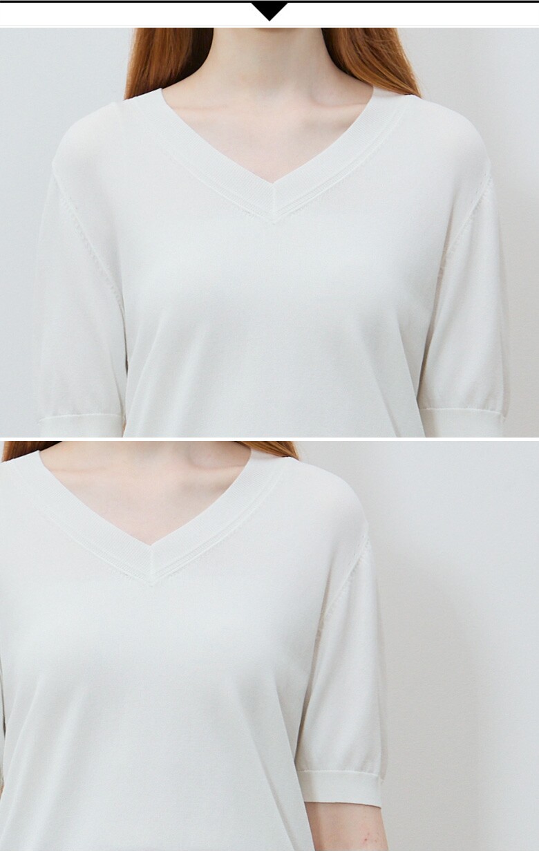 베이직한 디자인에 브이넥 라인이 어우러진 반팔 니트 탑입니다. 브랜드만의 고급 소재를 활용하여 우수한 착용감을 선사합니다. 가볍고 얇은 소재로 한여름까지도 착용하기 좋은 아이템입니다.