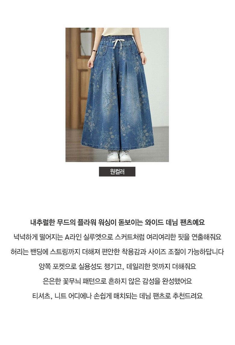 [~77까지]리버 허리 밴딩 플라워 와이드팬츠