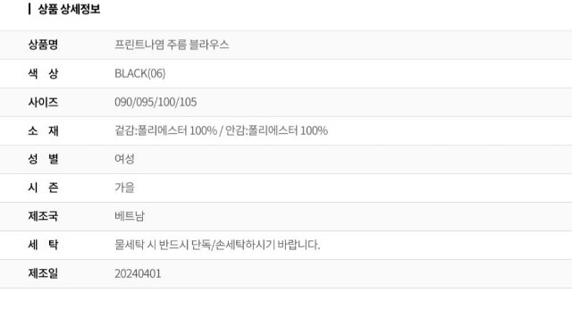 | 6. 세탁방법 및 취급시 주의사항 | 상품상세참조 |