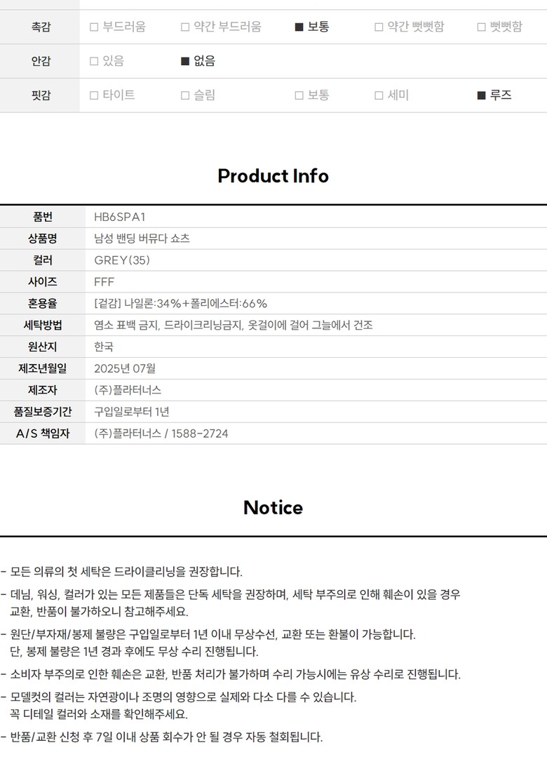 6. 세탁방법 및 취급시 주의사항 | 상세페이지 참고 |