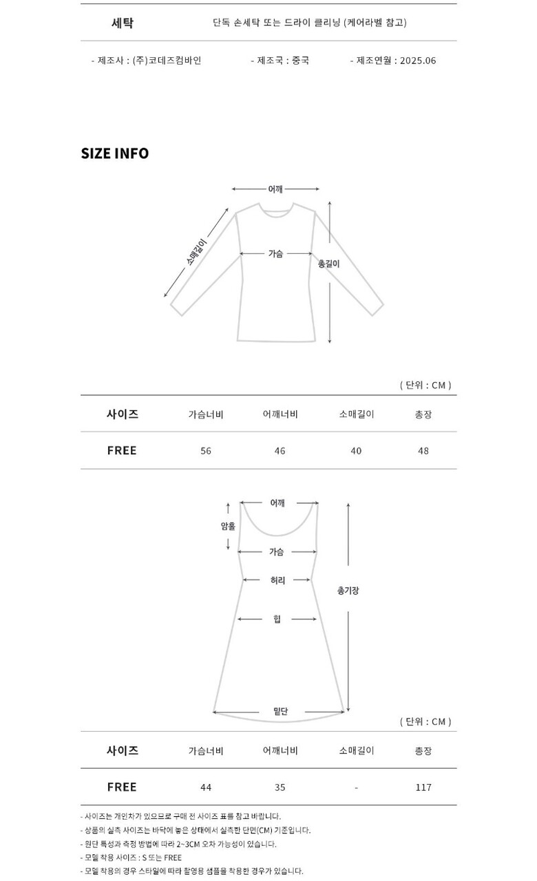 • 처음 배송된 상품상태와 다를 경우(세탁/착용 후 외출하신 경우) 반품이 불가합니다.