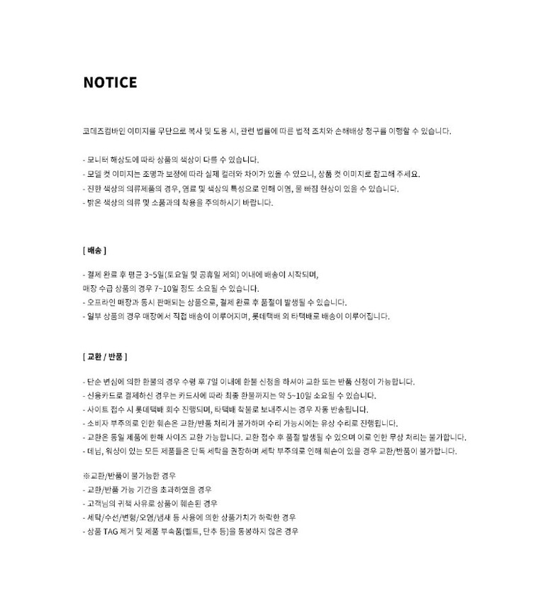 • 모든 규정은 전자상거래법에 의거하며, 택배사정으로 배송이 지연된 경우 재화를 공급받은 날로부터 7일 이내에 반품 가능합니다.