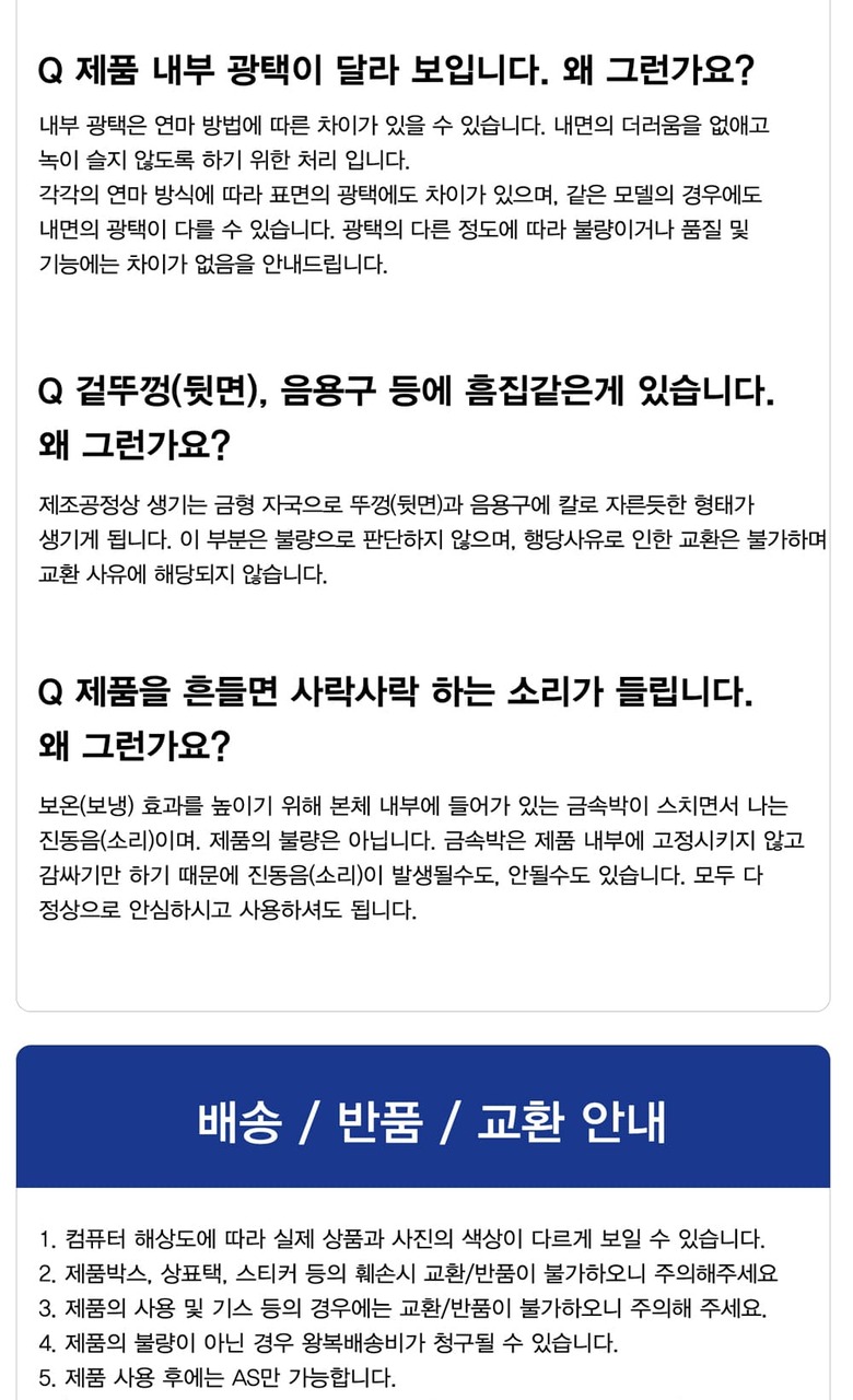 반품 유의사항
