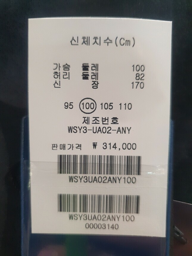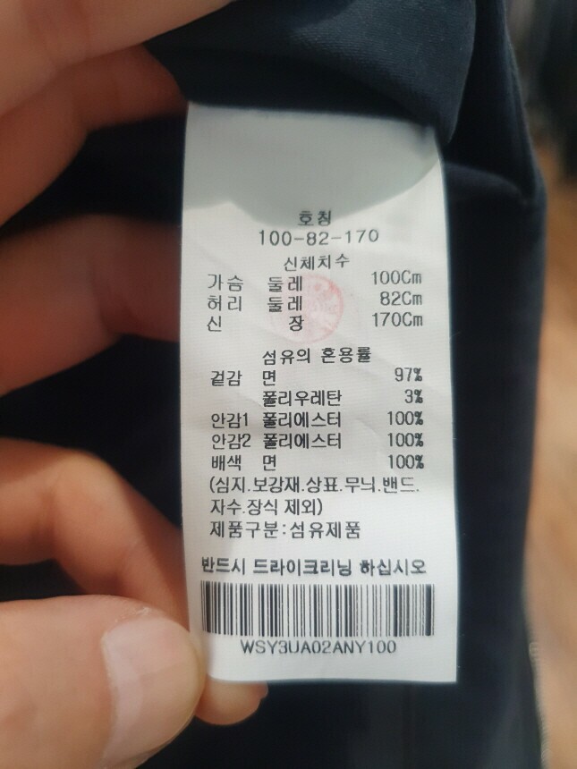 | 1. 제품 소재 (섬유의 조성 또는 혼용률을 백분율로 표시, 기능성인 경우 성적서 또는 허가서) | 겉감 : 면 97% , 폴리우레탄 3% 안감1 : 폴리에스터 100% 안감2 : 폴 |