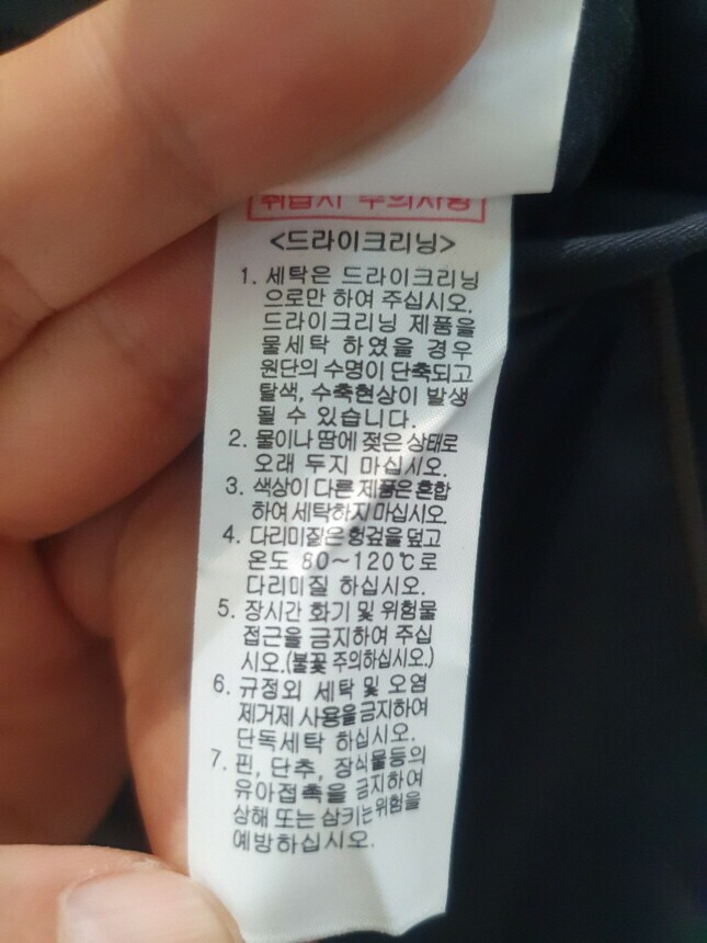 | 6. 세탁방법 및 취급시 주의사항 | 반드시 드라이 크리닝 하세요. |