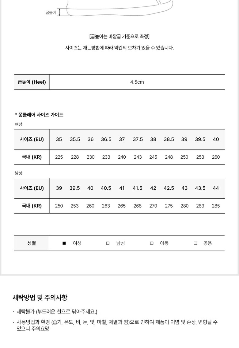 3. 치수 | EU34(210-215),EU34.5(215-220),EU35(220-225),EU35.5(225-230),EU36(230-235),EU36.5(235-240),EU37(240-245),EU37.5(245-250),EU38(250-255),EU38.5(255-260),EU39(260-265),EU39.5(265-270),EU40(270-275),EU40.5(275-280) |