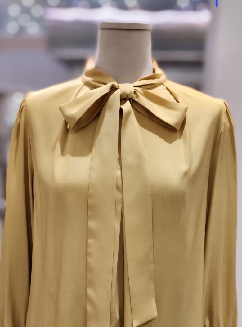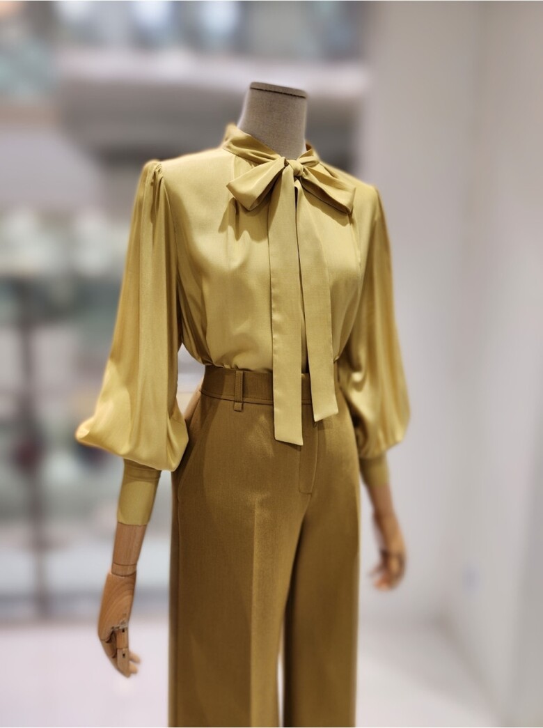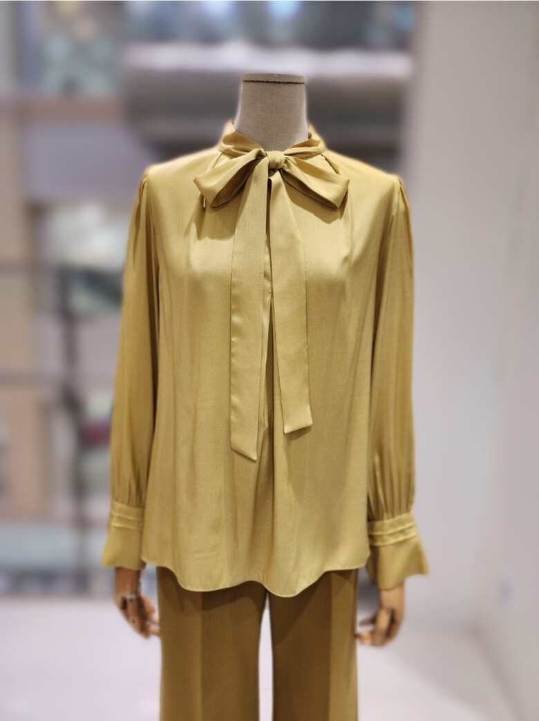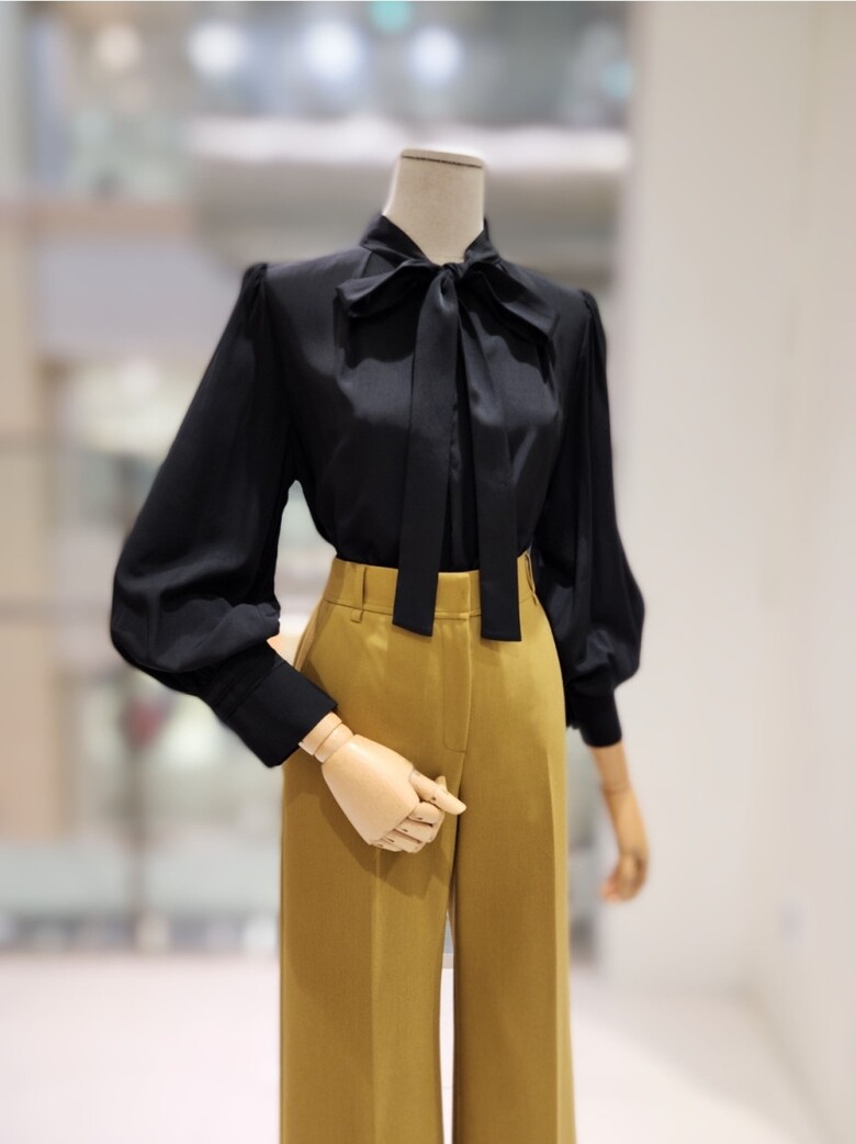 [발렌시아]소매 셔링 타이 블라우스 24AGB23