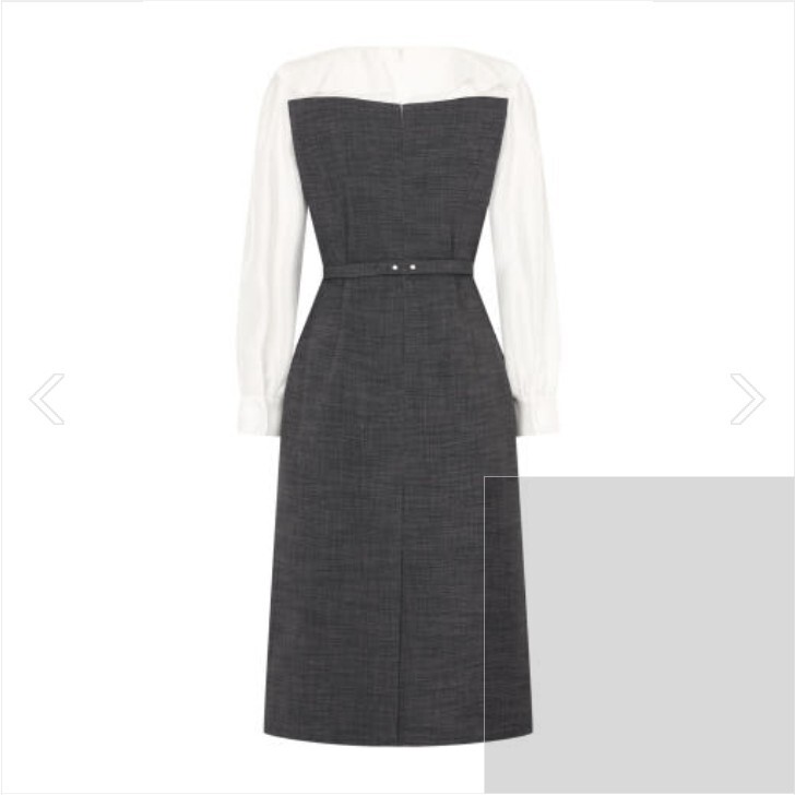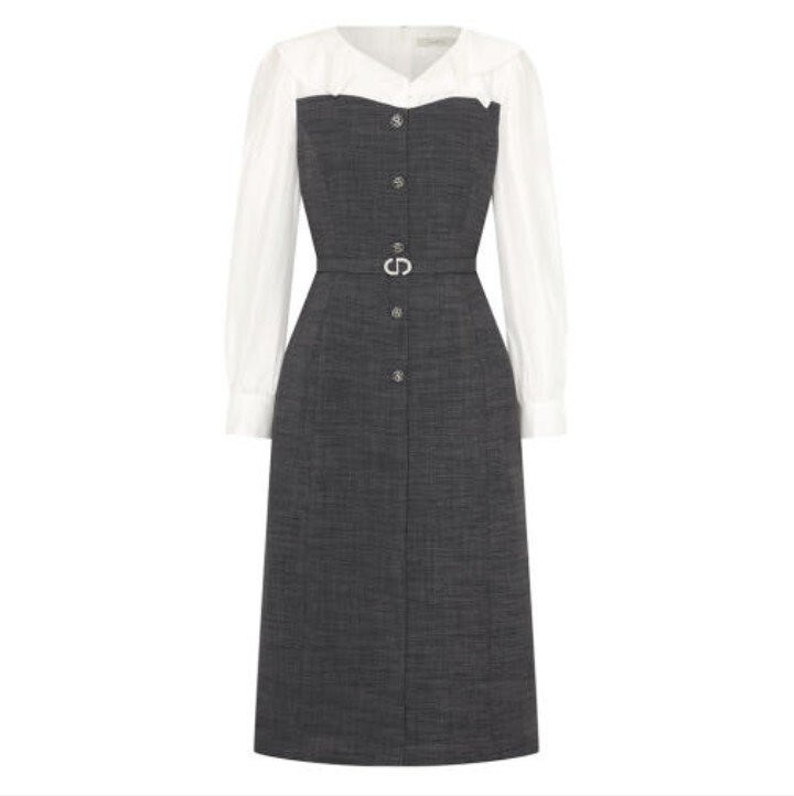 라운드넥 라인과 A라인 스커트 실루엣으로 슬림한 바디라인을 연출합니다.