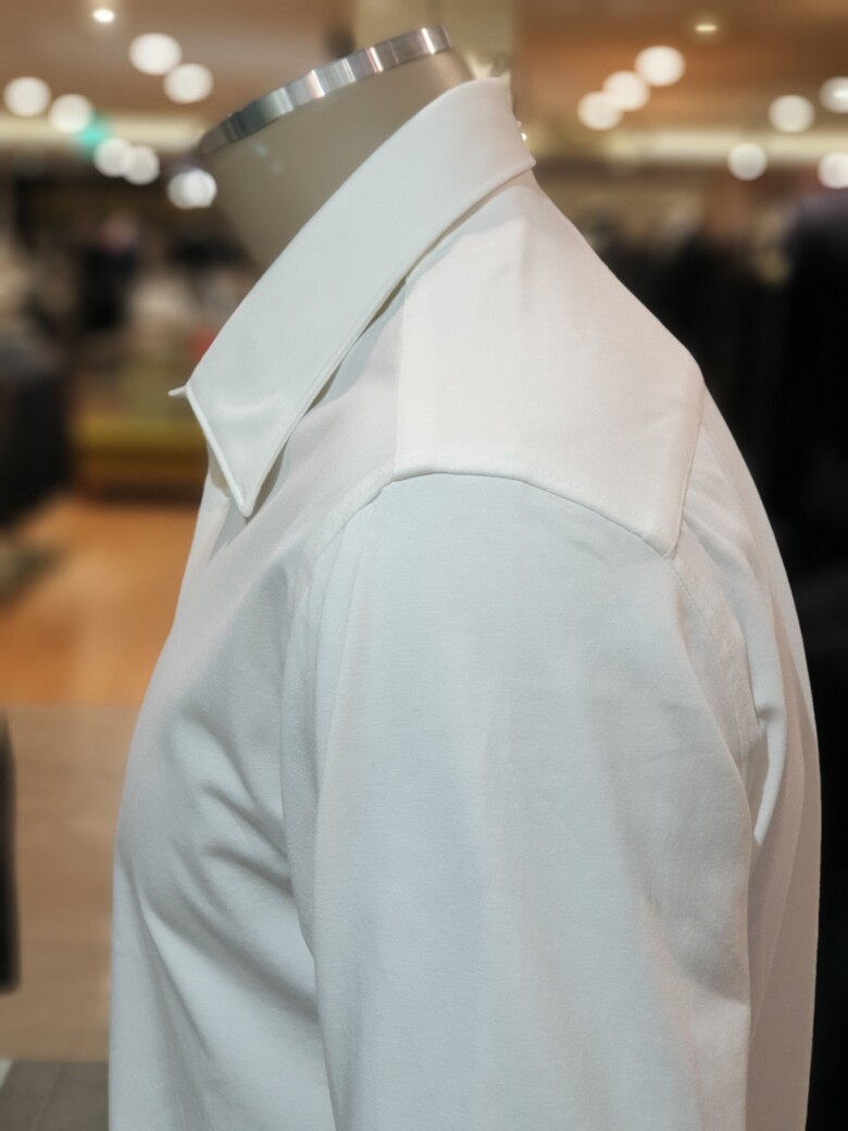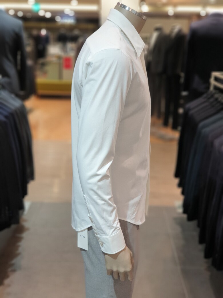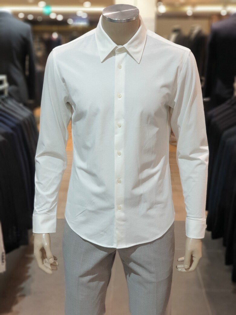 BON 24FW 화이트 소로나 실크 저지 사방스판 슬림셔츠BN4FBA620WH