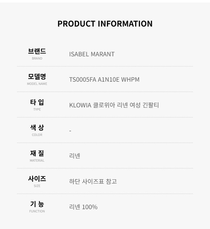 | 4. 제조사 | 이자벨마랑/(주)언커먼레이블-병행수입 |