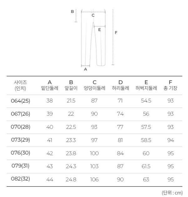 사이즈 : 64(25),67(26),70(27~28),73(28~29),76(30),79(31),82(32)