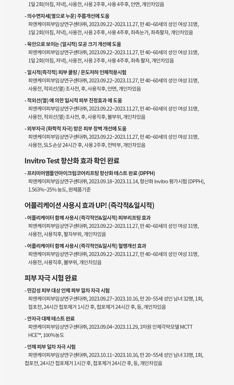 | 8. 기능성 화장품의 경우 화장품법에 따른 식품의약품안전청 심사 필 유무 | 상세페이지 참조 |