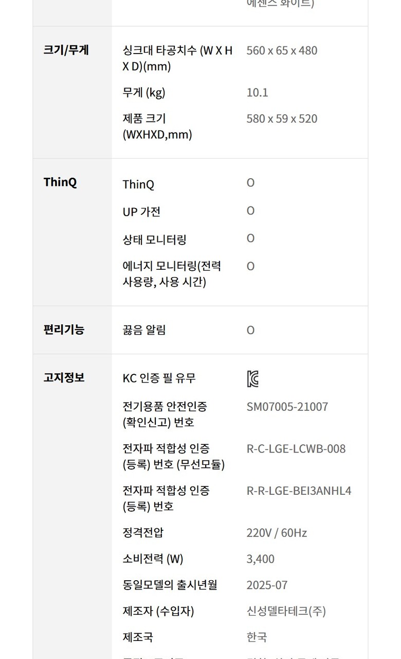 7. 정격전압,소비전력 | 220V / 60Hz, 3,400W, 1등급 |