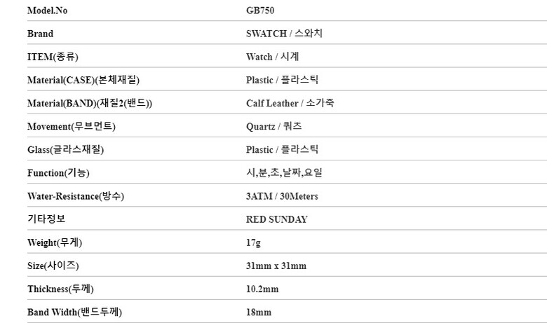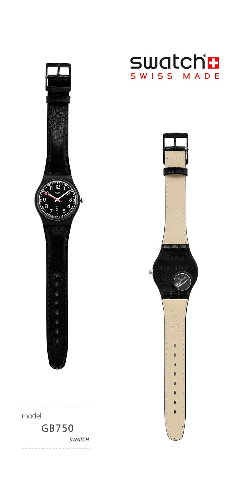 스와치 GB750 RED SUNDAY 공용 가죽시계