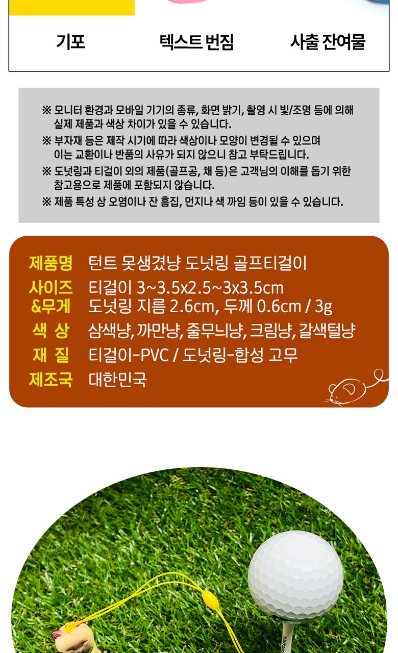 1. 품명 및 모델명 못생겼냥 도넛링 골프티걸이