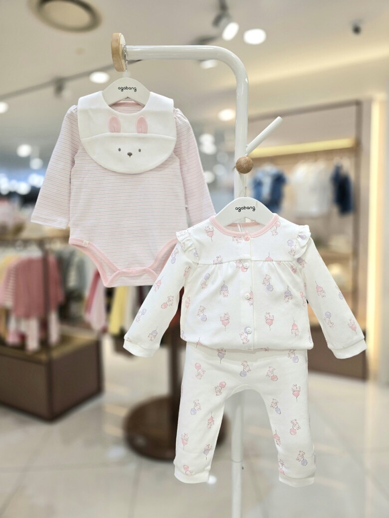은은하게 예쁜 상의 + 하의 + 바디수트 + 턱받이 4종 세트예요~~