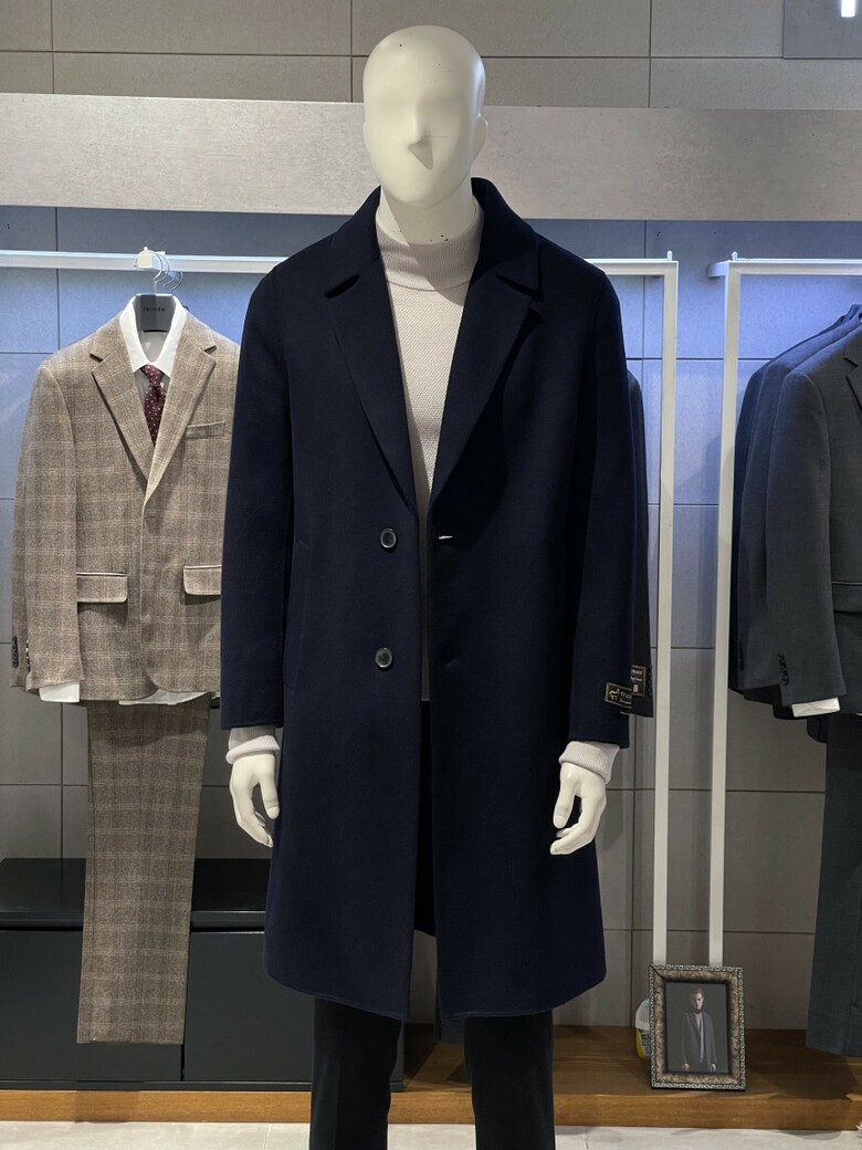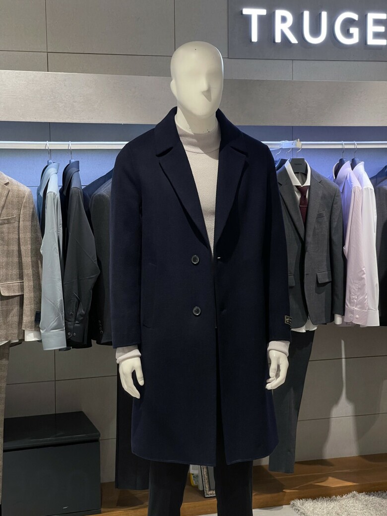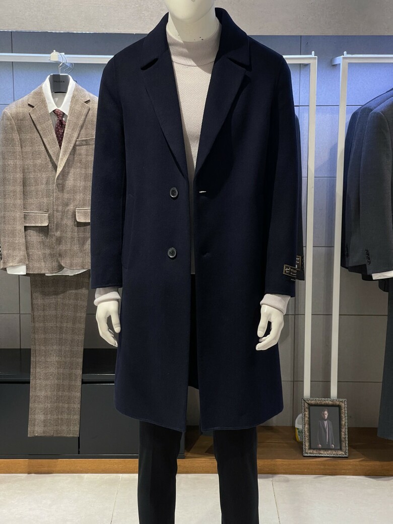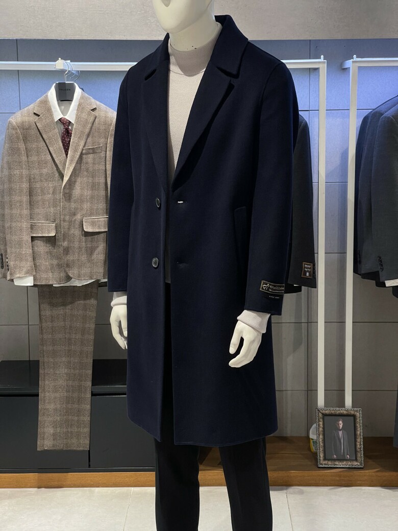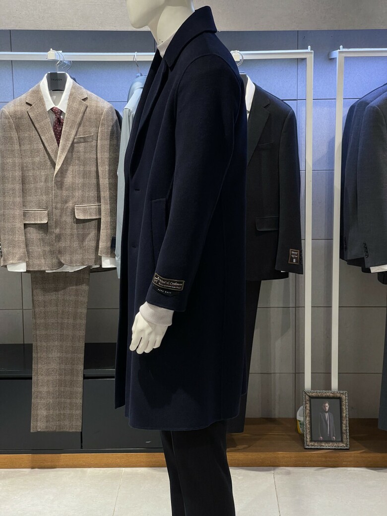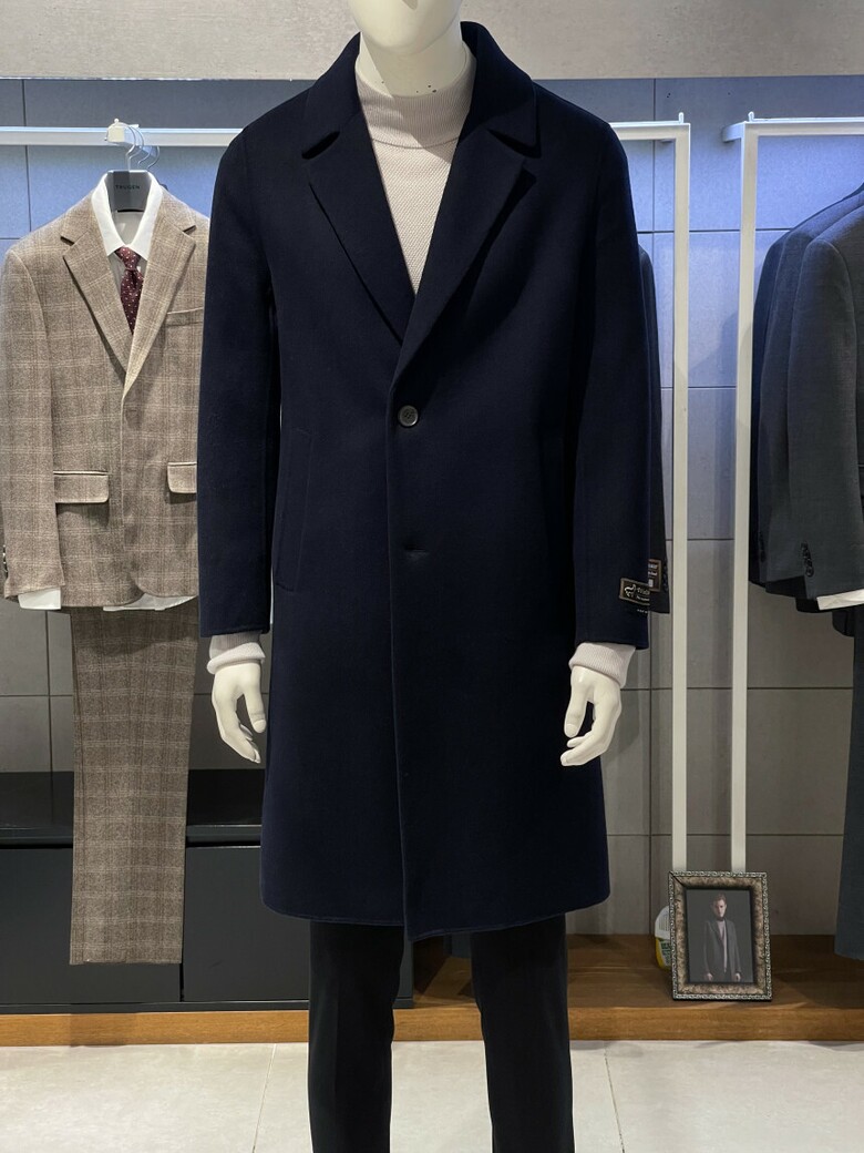 트루젠 (역시즌/극소량) 네이비 캐시미어블렌드 핸드메이드 남자 롱코트 2244CL240410
