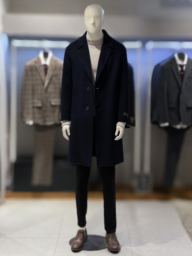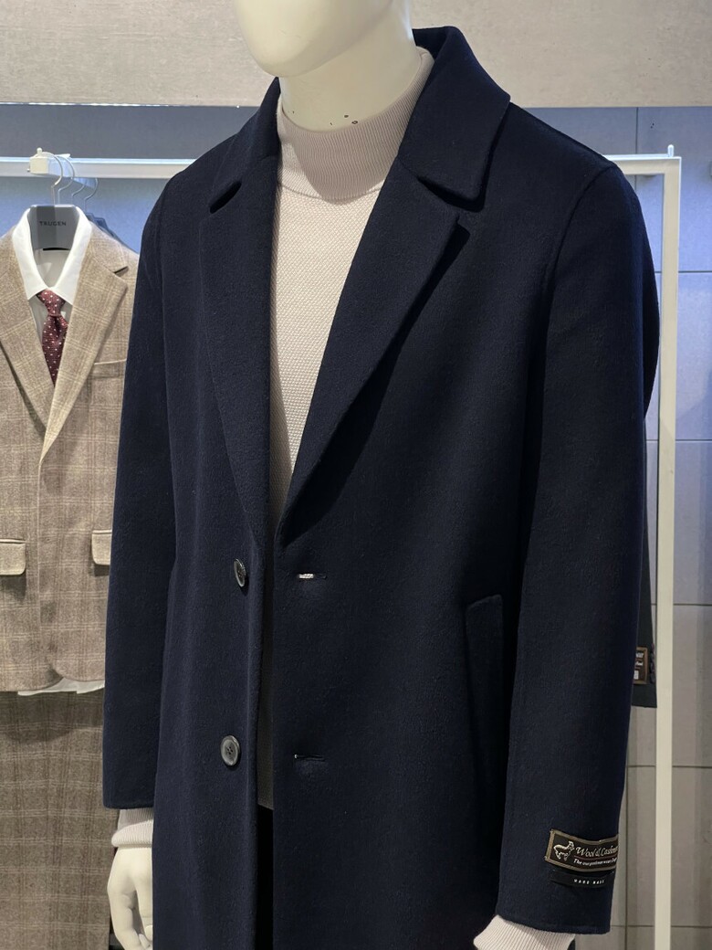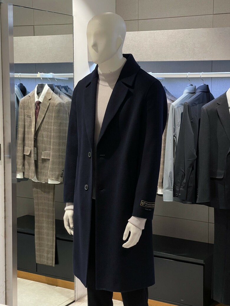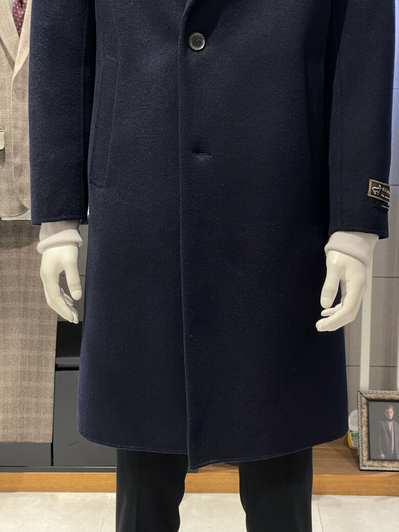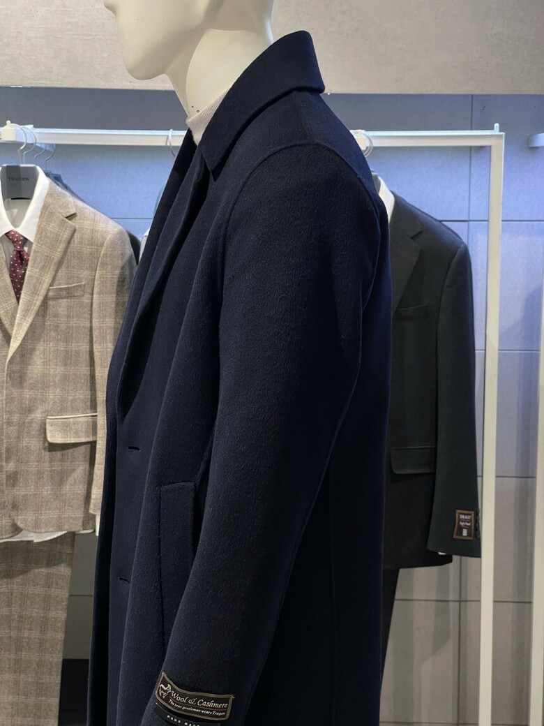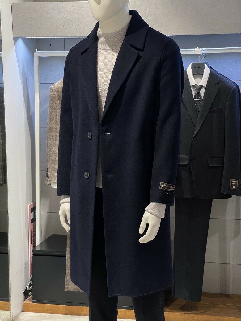 트루젠 (역시즌/극소량) 네이비 캐시미어블렌드 핸드메이드 남자 롱코트 2244CL240410