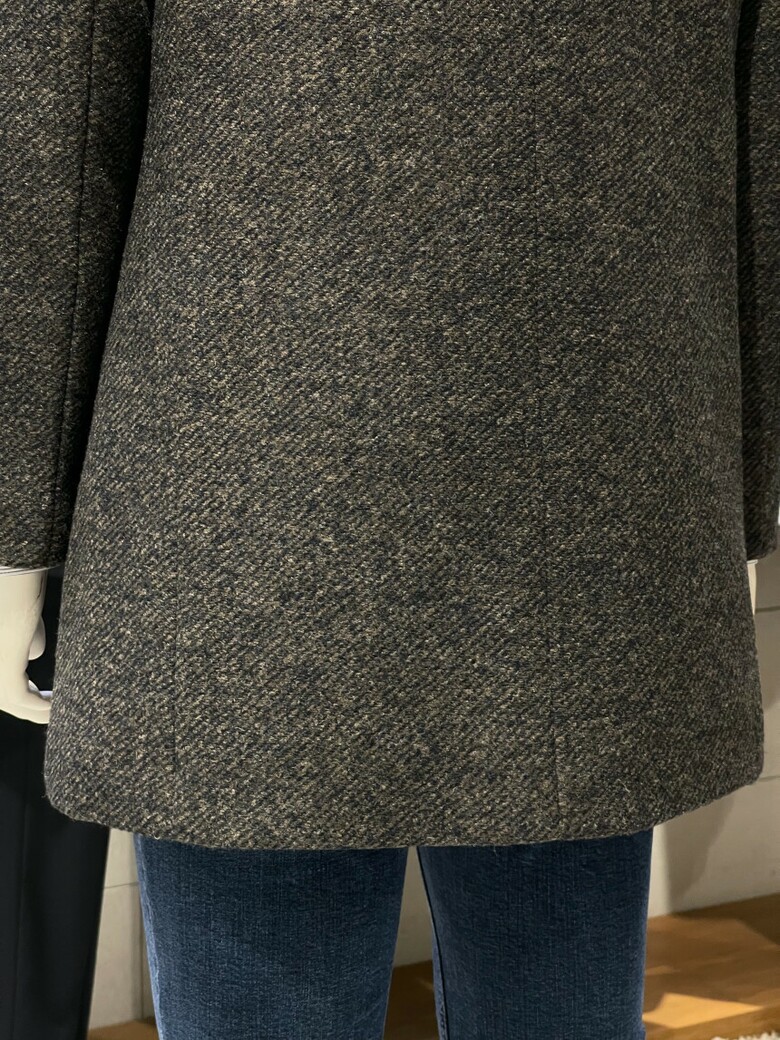 엉덩이 덮는 정도 길이감의 하프 코트입니다.