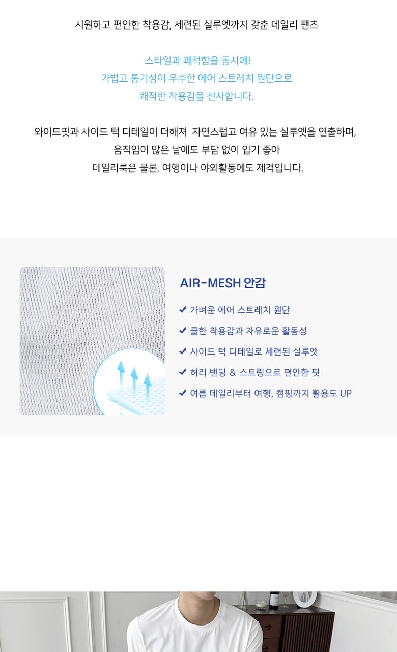 골피아 남자 에어 메쉬 사이드턱 힙포켓 와이드 팬츠 데일리 바지